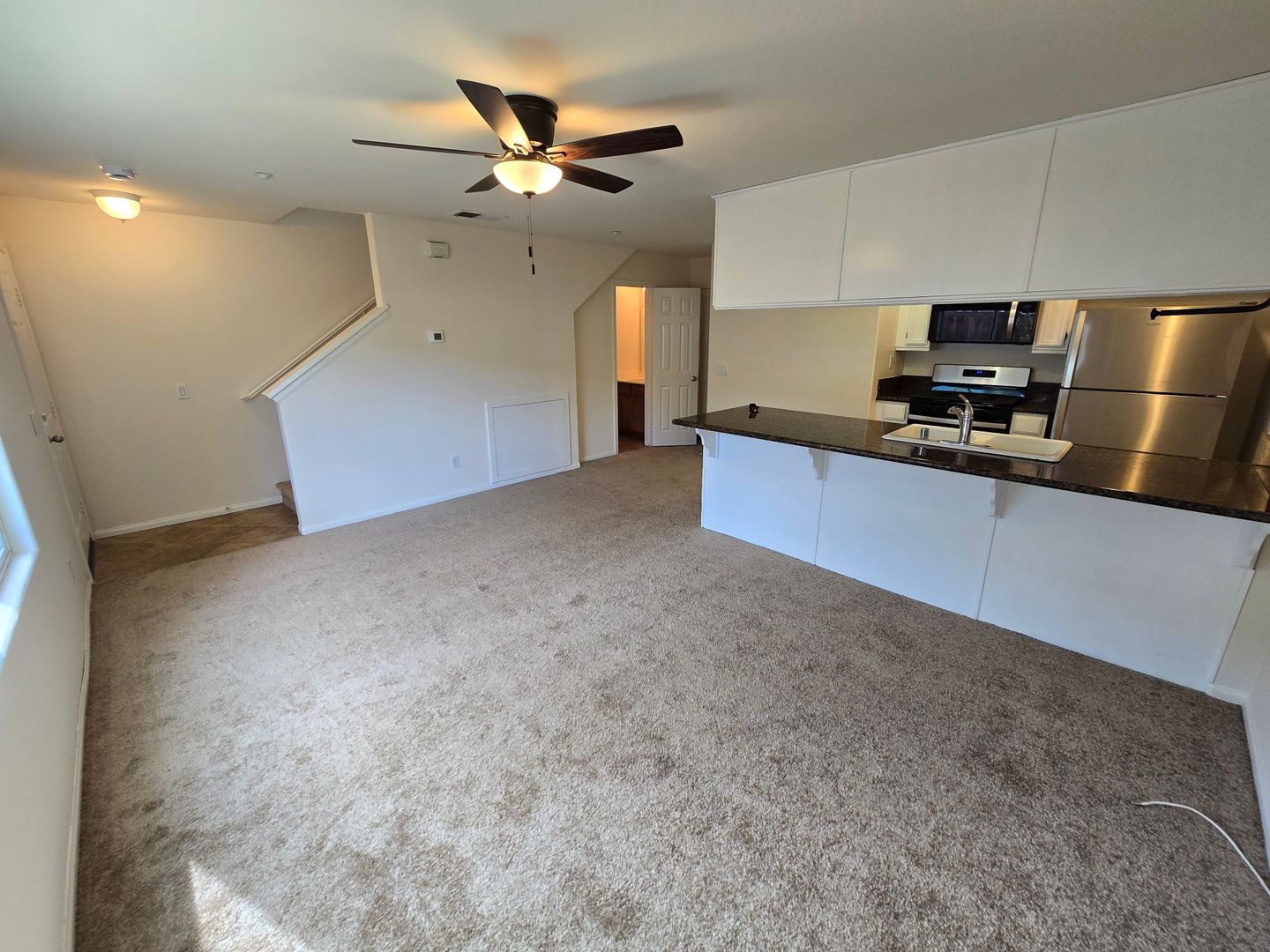 This stunning 3-bedroom, 2.5-bathroom residence boasts new carpet, fresh paint, and elegant stone countertops. Enjoy the convenience of a 2-car garage, laundry hookups, and a large balcony perfect for relaxing. Stay comfortable year-round with ceiling fans and central AC and heat.